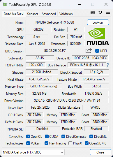 - Bộ nhớ 32GB GDDR7: Băng thông nhớ được mở rộng kỷ lục. Lượng VRAM khổng lồ này không chỉ phục vụ cho việc chơi game 8K mà còn là “vũ khí hạng nặng” cho các studio sản xuất phim 3D, chuyên gia render và các kỹ sư phát triển mô hình trí tuệ nhân tạo (AI).