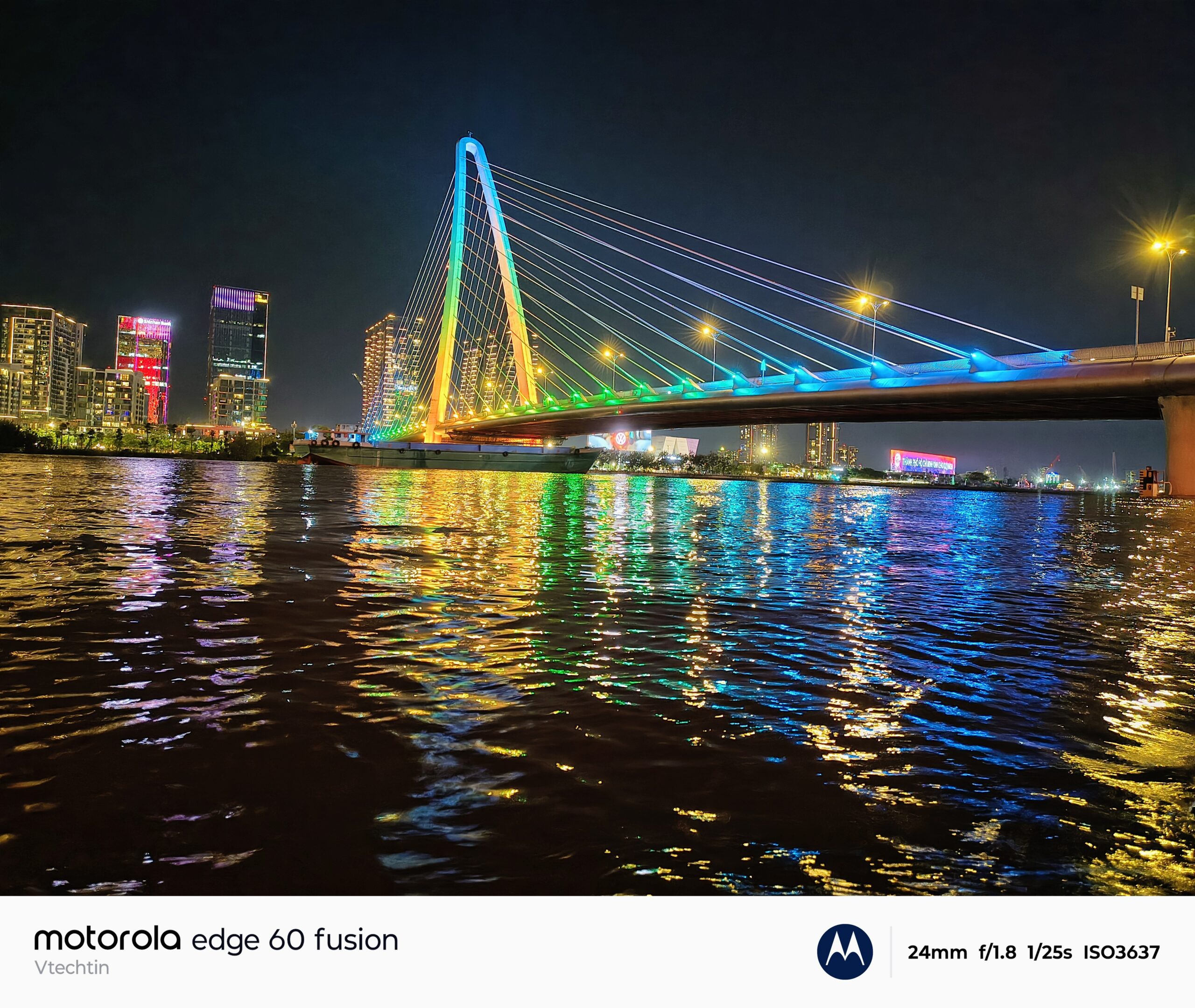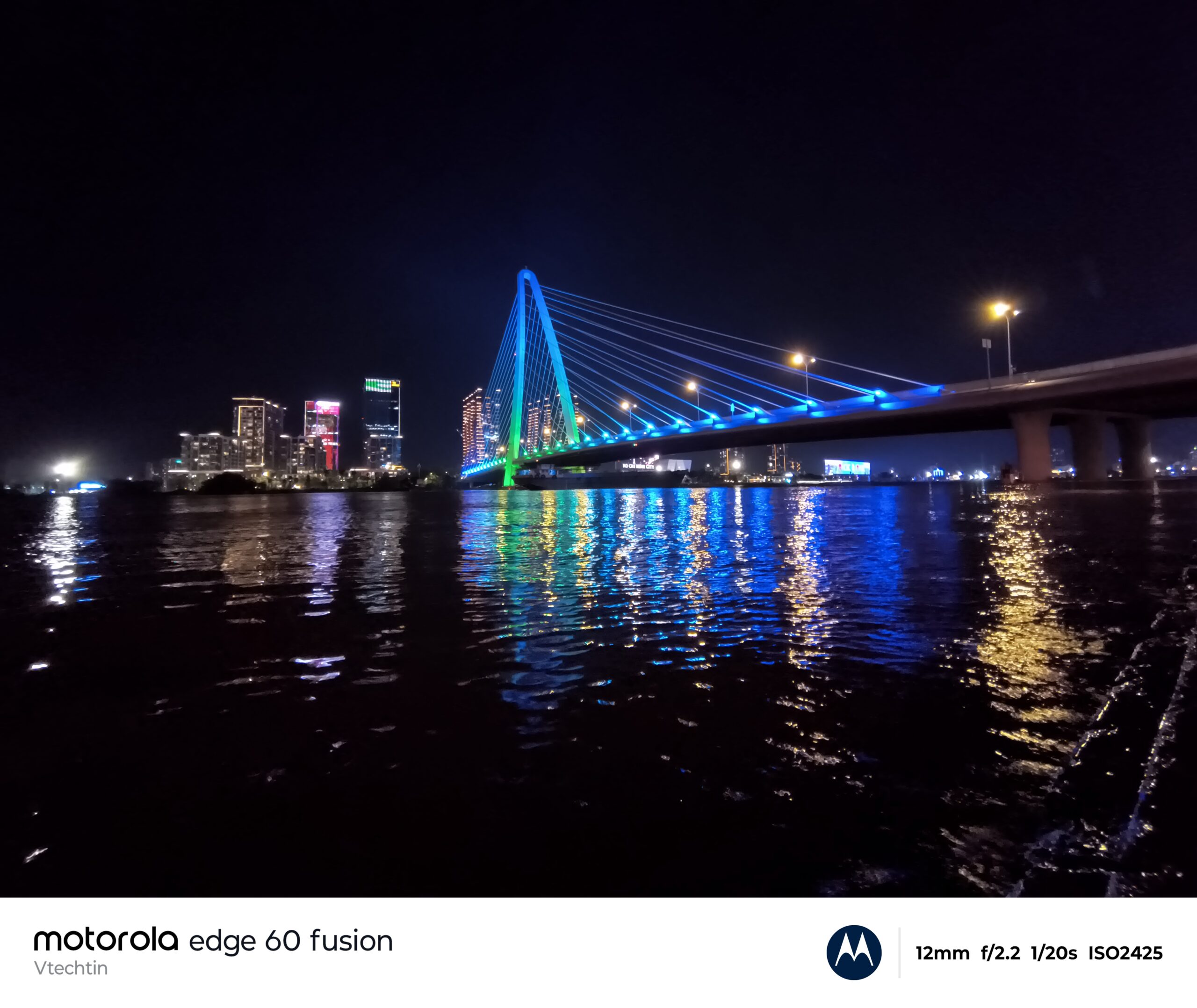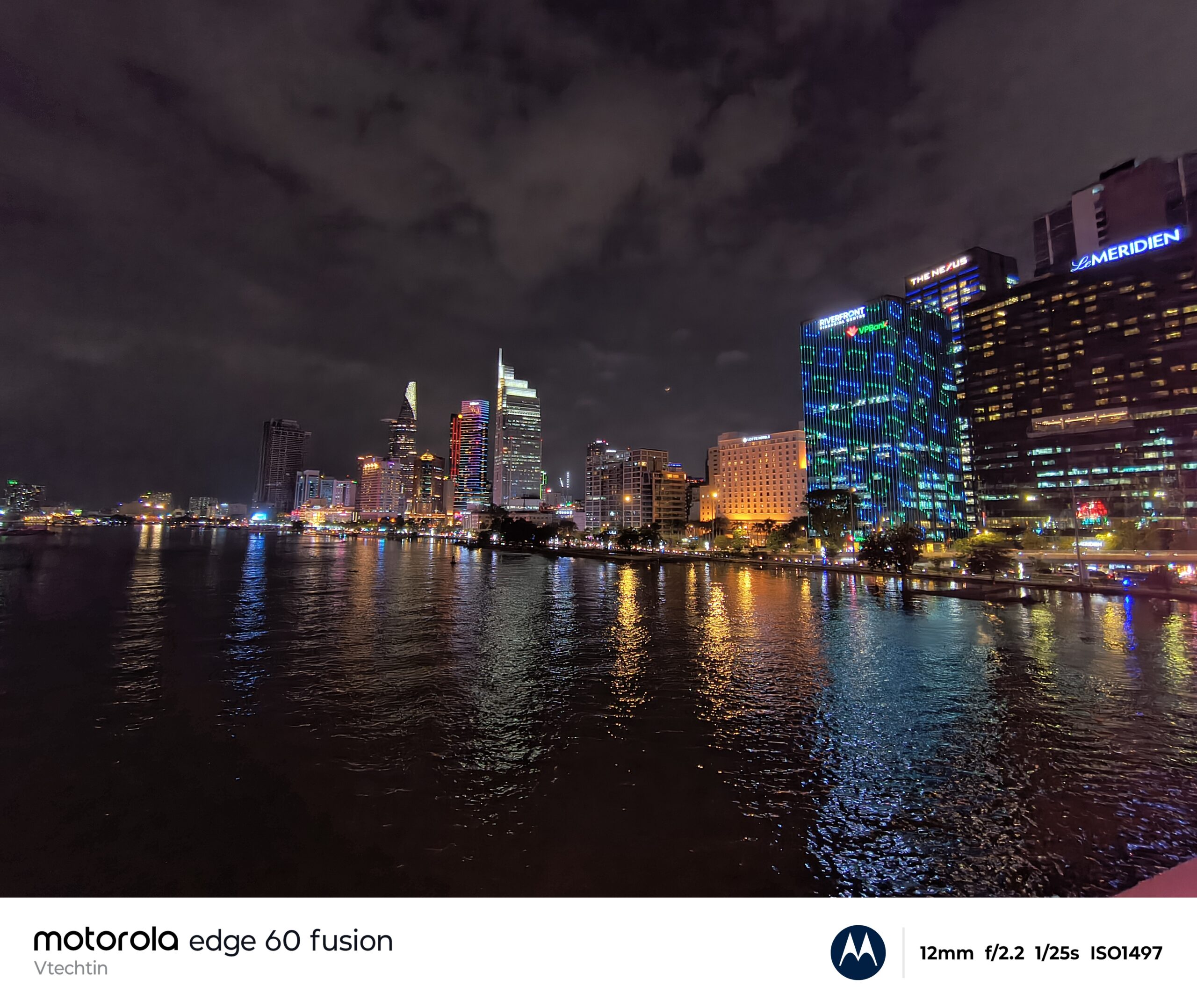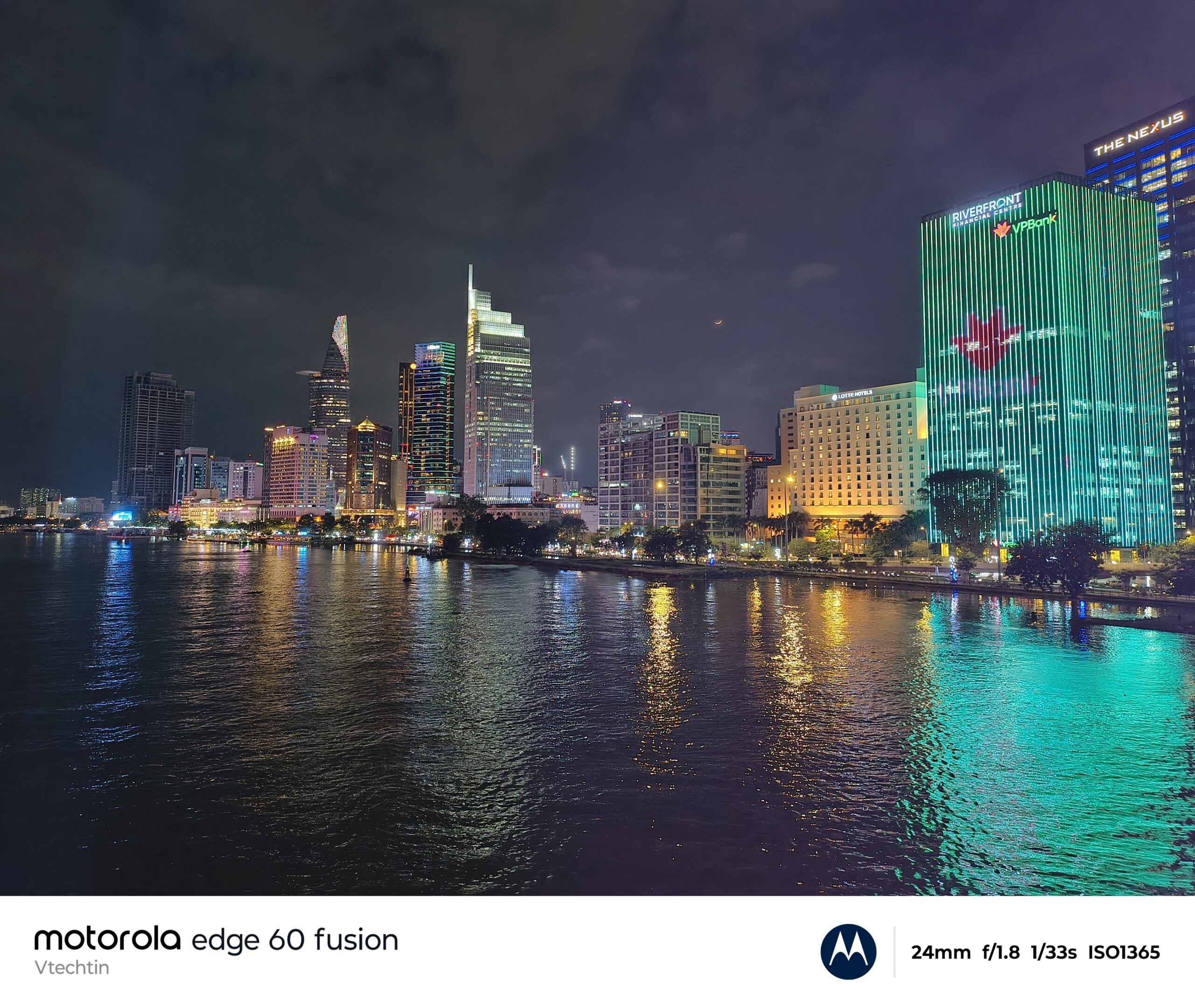Ảnh chụp thiếu sáng trên Motorola Edge 60 Fusion khá ít noise, nhưng cũng không bị bệt. Độ tương phản cao. Vùng sáng được kéo lại khá cân bằng, vùng tối không bị đẩy sáng quá nhiều. Từ đó, hạn chế hiện tượng bầu trời tối bị xám xịt thay vì màu đen vốn có. Tuy nhiên, có 1 điều kiện mình thấy máy chưa xử lý tốt là khi chụp tối nhưng quá nhiều chi tiết sáng li ti. Cụ thể là mình có chụp ảnh nhà thờ Đức Bà đang được giăng các dây đèn, thì ảnh có hiện tượng color noise. Hiện tượng này chỉ xảy ra khi mình chụp ảnh zoom 2x, còn nếu vẫn để 1x thì ảnh vẫn rất ổn.