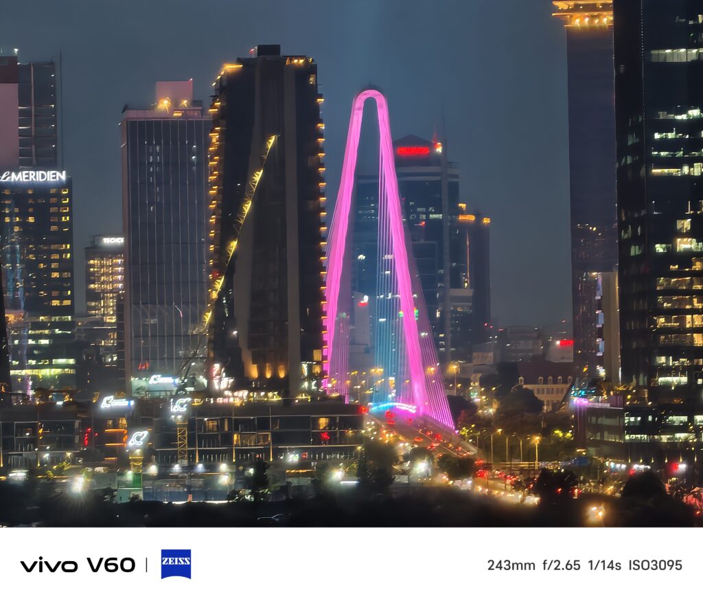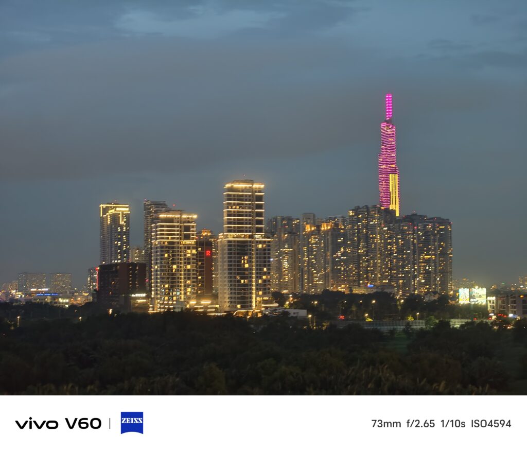 Thiếu sáng mới thật sự là điều kiện thử thách camera của điện thoại. Đánh giá chung, hình ảnh từ vivo V60 5G tạm đủ dùng. Nếu bạn có thêm 1 chút khiếu edit ảnh thì vẫn có ảnh đẹp để dùng. Còn nếu nói về ảnh stock thì khi chụp ở các tiêu cự zoom, ảnh bị bệt khá rõ. Theo mình thì có lẽ do AI can thiệp khá nhiều để khử noise nên ảnh bị bệt. Và cũng dễ thấy được hình ảnh khá phẳng, ít độ nổi khối. Tuy nhiên, các thông tin cần thiết vẫn đầy đủ để bạn có thể hậu kì tốt.