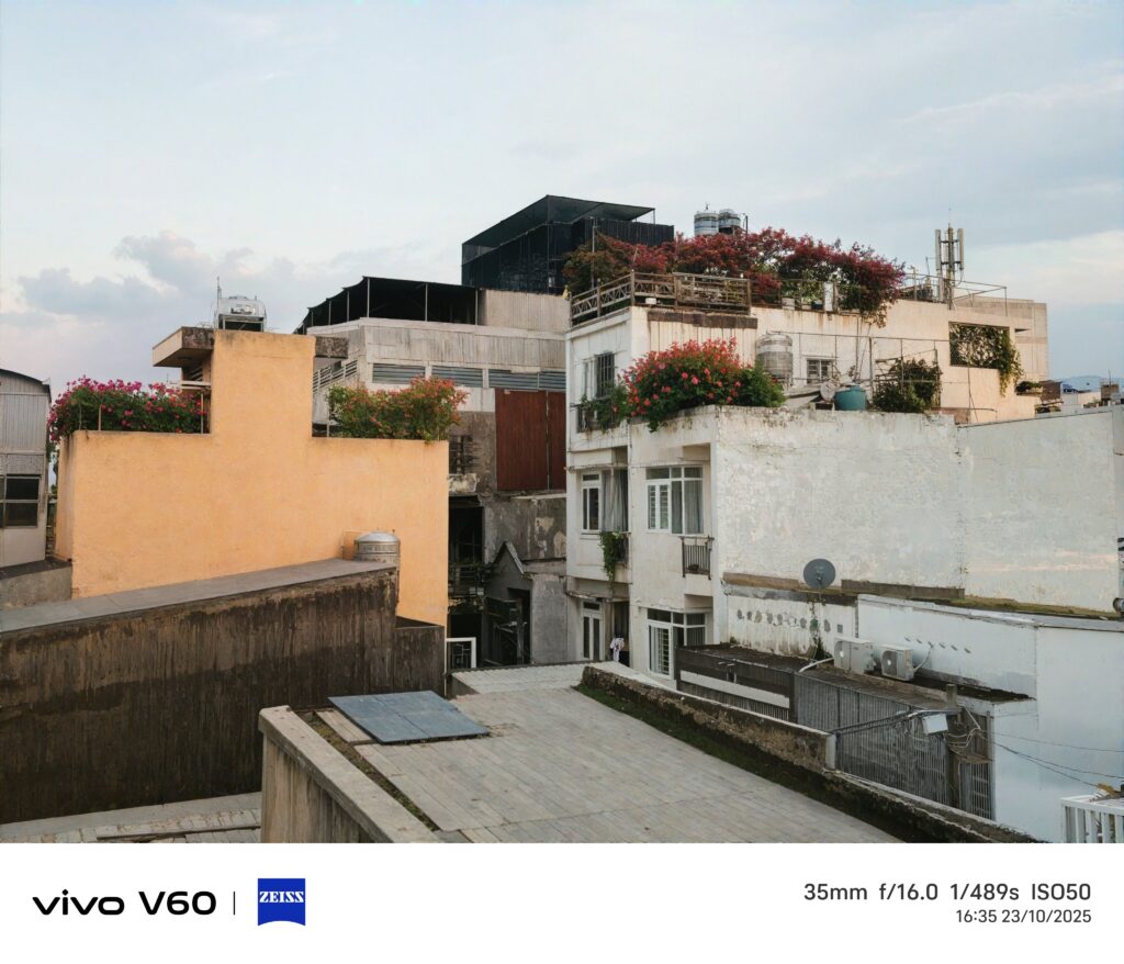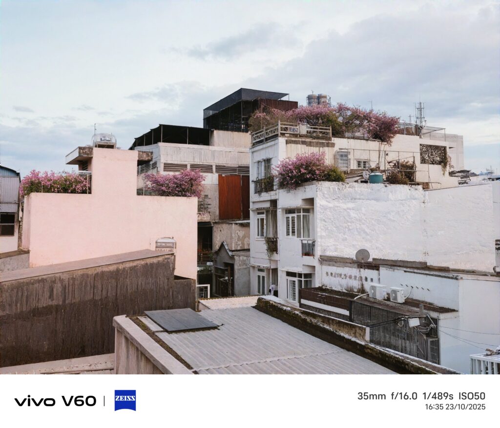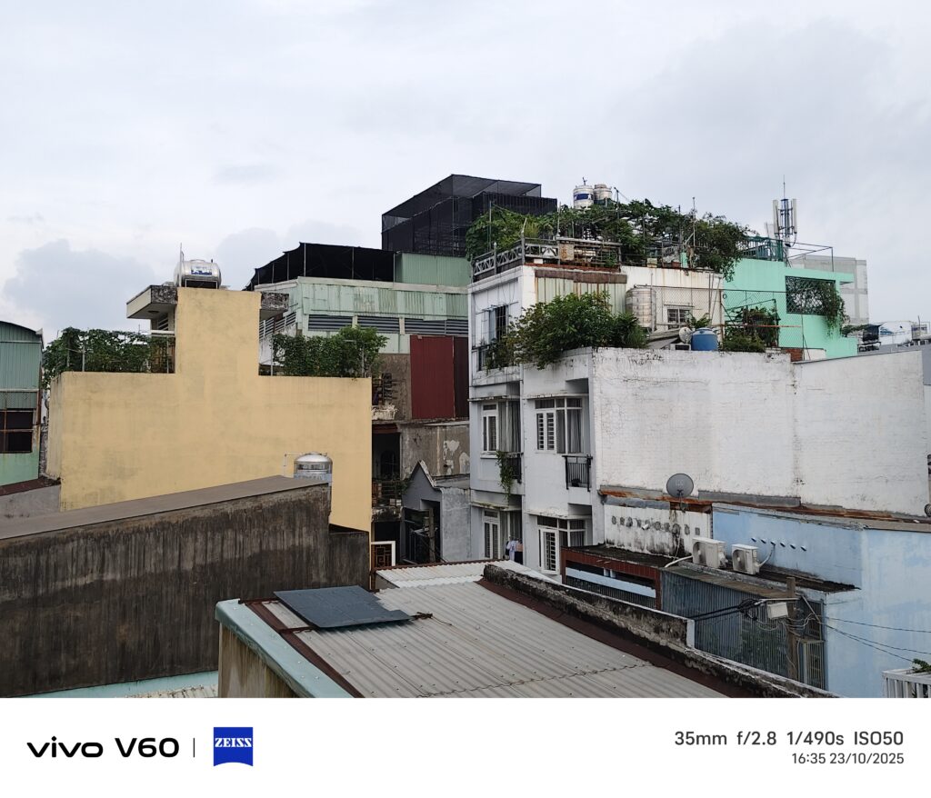 Ở tầm giá thấp hơn so với vivo V60 5G, các máy đã có thể cho ra ảnh rất tốt ở điều kiện đủ sáng. Thế nên không lý do gì vivo V60 5G lại thọt về chất lượng camera được. Độ chi tiết của bức ảnh cho ra khá tốt. Tuy thế, ảnh vẫn mịn màn, chuyển màu mượt và không có hiện tượng gai giữa các chủ thể. Nhờ vào thuật toán tốt, ảnh của cho ra thường có cân bằng sáng ổn, không có hiện tượng cháy vùng sáng và vùng tối mất thông tin.