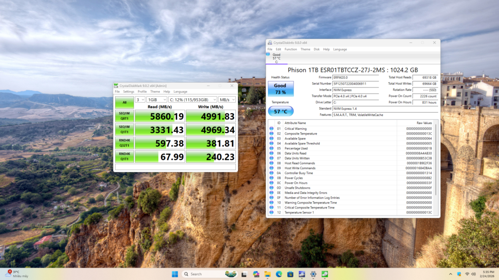 MSI Cubi Z AI 8M được trang bị ổ cứng SSD PCle Gen 4 dung lượng 1TB, tốc độ đọc ghi vô cùng ấn tượng. Với ổ cứng SSD này, bạn hoàn toàn có thể thoải mái lưu trữ dữ liệu, khởi động ứng dụng hay truyền tải dữ liệu với tốc độ chóng mặt.