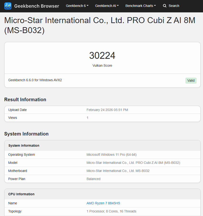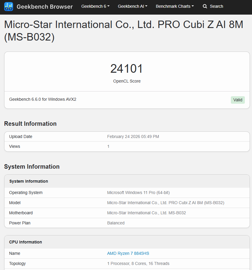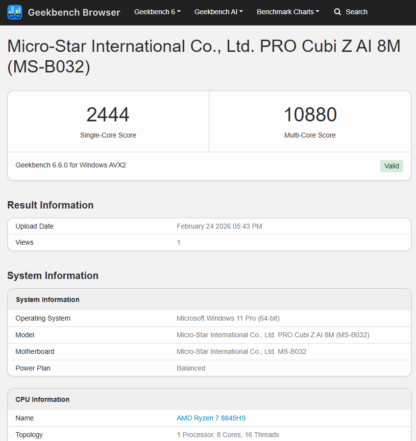 MSI Cubi Z AI 8M mang trong mình 1 cấu hình sẵn có với AMD Ryzen 8000 series. Cụ thể phiên bản mình đang có sử dụng AMD Ryzen 7 8845HS và phiên bản cao nhất sử dụng AMD Ryzen 9 8945HS. Với 8845HS, đây là 1 mẫu CPU có 8 nhân và 16 luồng, xung nhịp cơ bản 3.8Ghz và có khả năng boost tối đa 5.1Ghz. Với phiên bản được sử dụng và tinh chỉnh trên MSI Cubi Z AI 8M, mẫu CPU này có thể đạt tối đa 55W điện và ổn định ở mức 4xW điện, duy trì hiệu năng cao và khá ổn định.