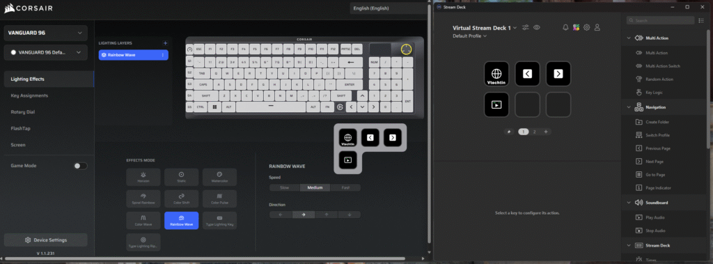 Phần mềm thiết lập và StreamDeck ảo cho Vanguard 96 khá dễ dùng
