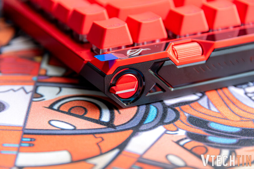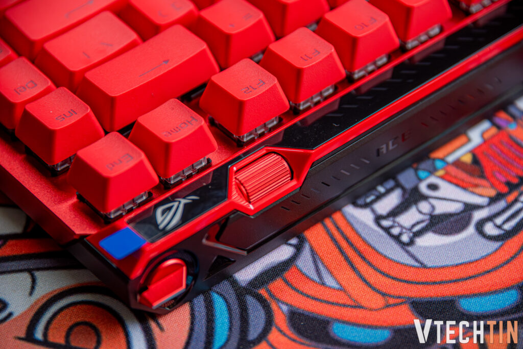 Ngoài là 1 chiếc phím cơ vốn có switch, case, keycaps để tạo nên 1 chiếc phím thì mẫu phím này còn có những nút bấm và vùng chạm cảm ứng độc đáo. Chúc ta sẽ có 1 chiếc cần gạt để có thể chỉnh tắt mở tính năng Hall Effect. Kế bên cần gạt đó là con lăn để bạn có thể chỉnh nhanh hành trình nhận tín hiệu của switch