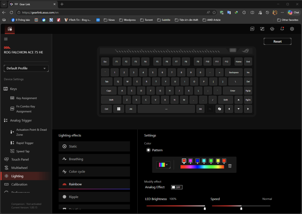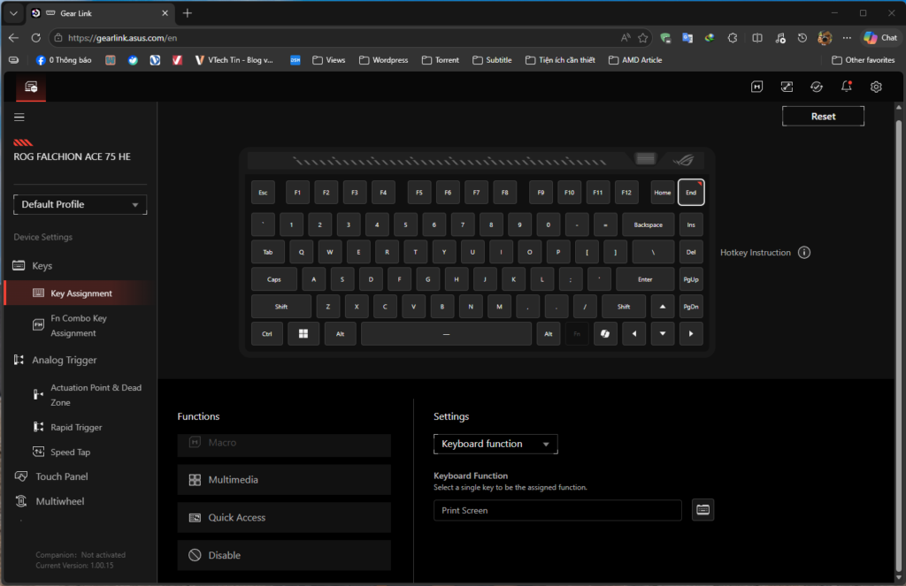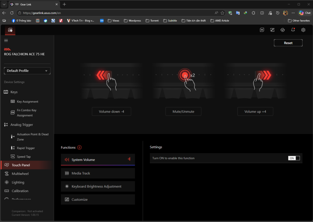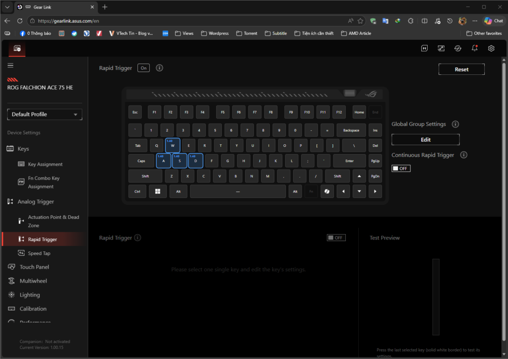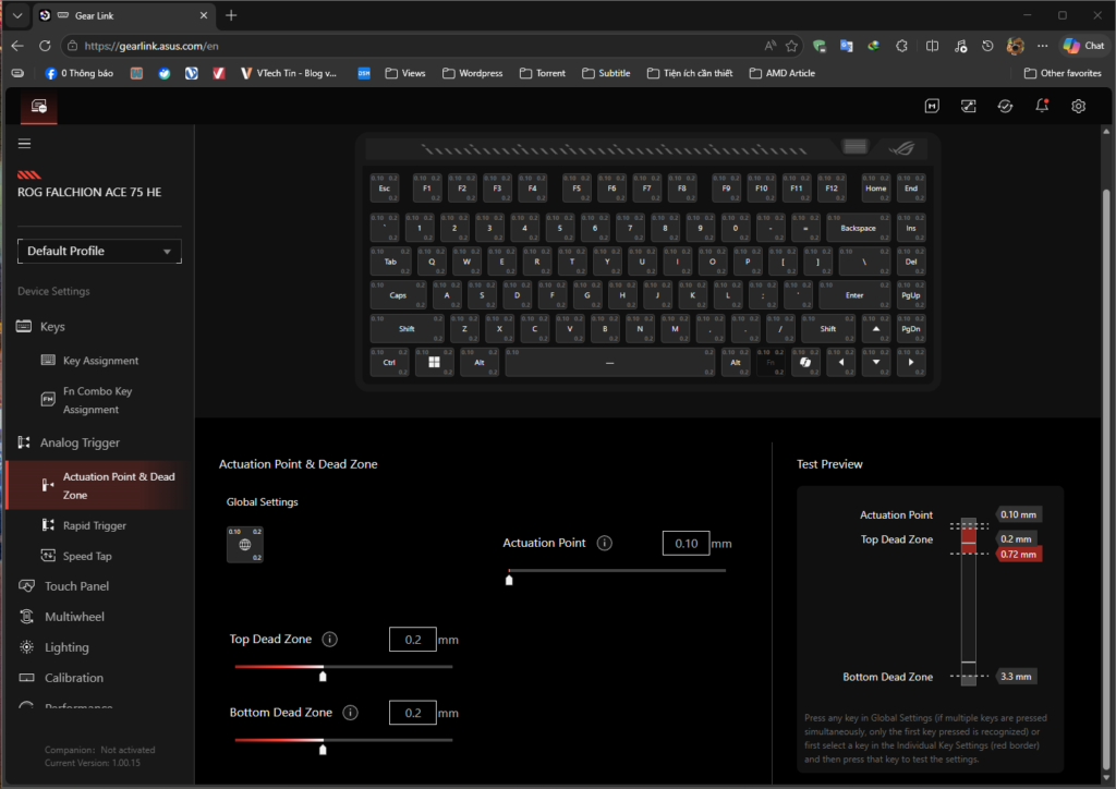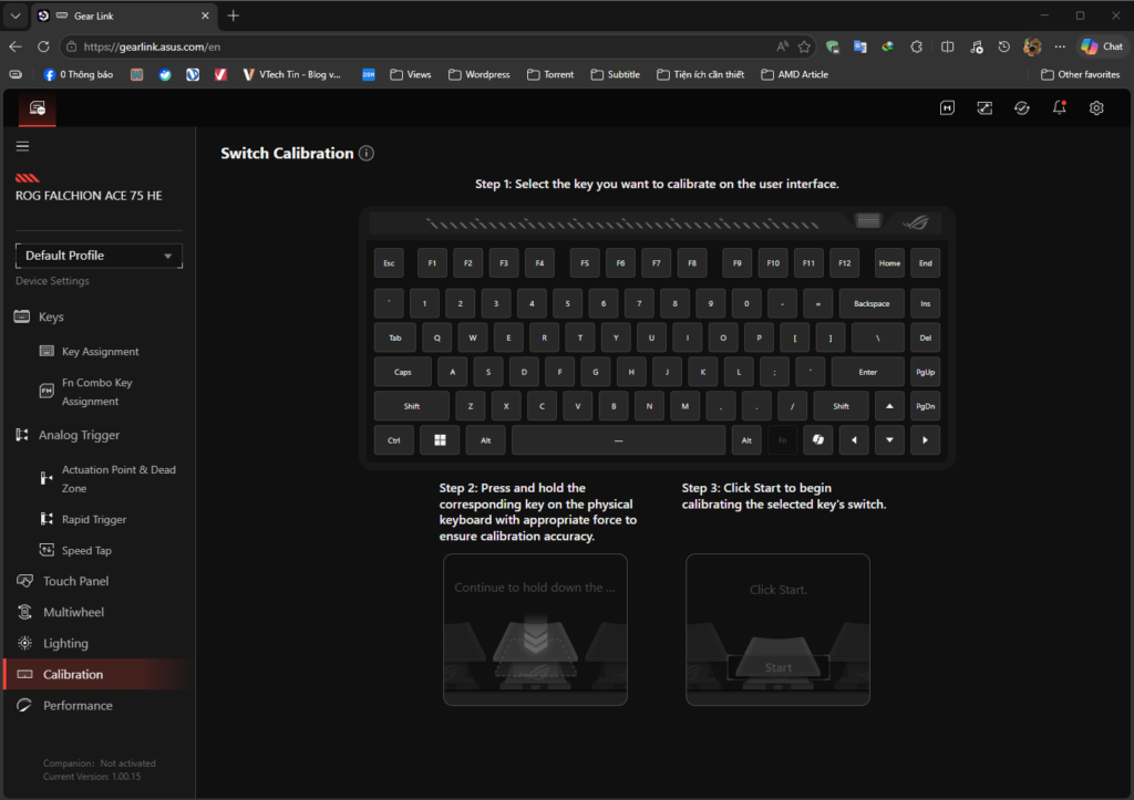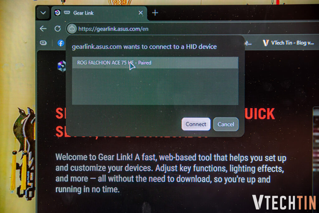 Hiện nay, các hãng làm phụ kiện lớn đã lượt bỏ bớt đi phần mềm dùng để tinh chỉnh, thay vào đó là webhub. Và ASUS cũng không ngoại lệ khi hãng đã tích hợp web GEAR Link. Bạn hoàn toàn chỉ cần vào web và kết nối phím là có thể tinh chỉnh mọi thứ. Đặc biệt là với những ai có “GEAR RUỘT” thì tính năng này sẽ siêu tiện lợi khi không phải ngồi đợi cài phần mềm rườm rà, chỉ cần có web là xài được luôn.